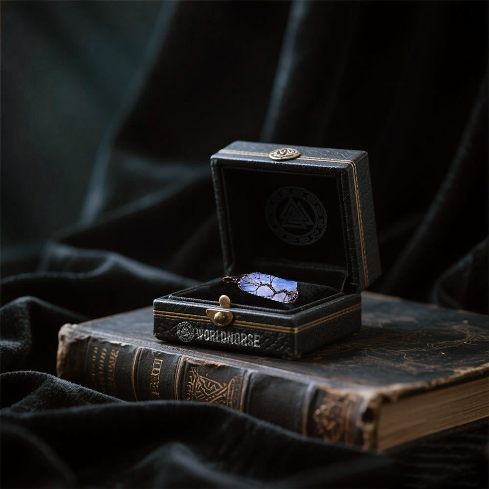 Yggdrasil, the mighty World Tree in Norse lore, stands as a symbol of the interconnectedness of all realms. A resplendent blue crystal, reminiscent of the clear skies and the deep - seated wisdom of the ages, lies at its heart. This crystal is artfully encircled by bronze branches that mimic the sprawling boughs of Yggdrasil, the World Tree in Norse mythology.
