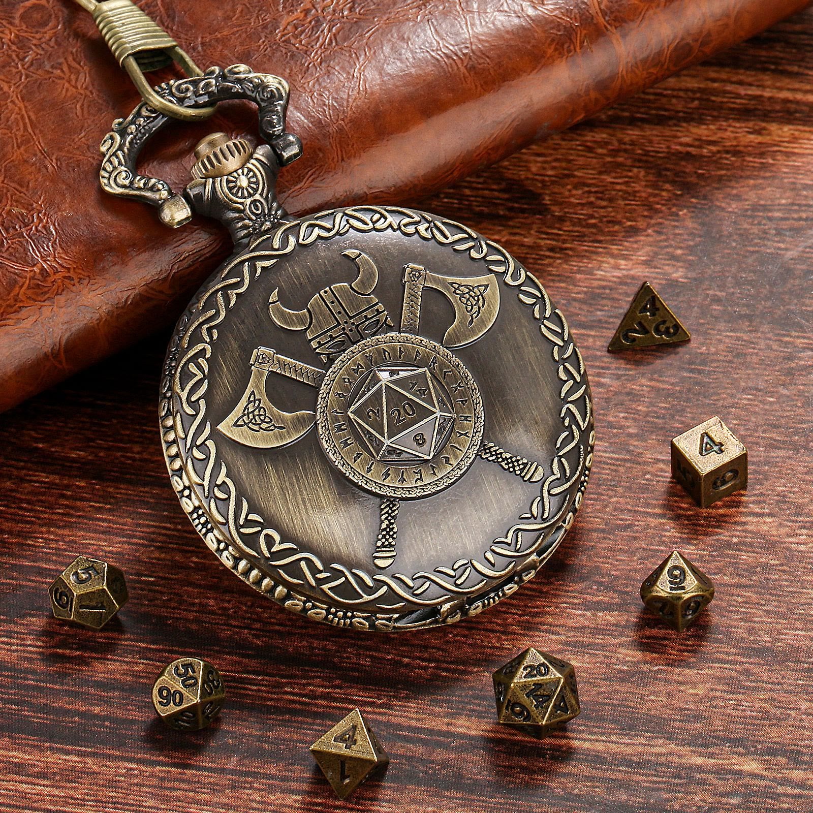- Weight: 60g(1 x Pocket Watch Case , 1 x Chain , 7 x Dice)